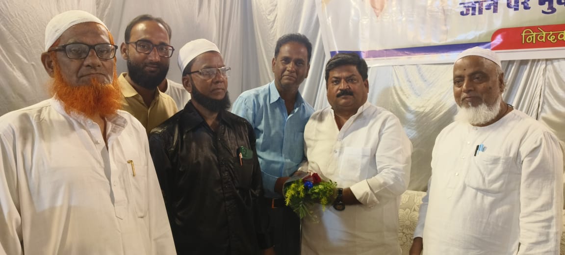 नवनिर्वाचित कांग्रेस जिलाध्यक्ष सतीश केडिया का स्वागत करते फरोग-ए-अदब के संस्थापक मुख्तार हुसैनी।