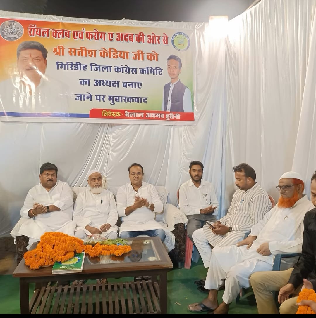 गिरिडीह : रॉयल क्लब और फरोग-ए-अदब ने संयुक्त रूप से नवनिर्वाचित जिला अध्यक्ष सतीश केडिया के सम्मान में 11 अक्टूबर को कवि गोष्ठी की। गोष्ठी में जाने-माने शायरों और कवियों ने अपनी प्रस्तुति दी। कविताएं सुनकर श्रोतागण झूमने लगे। एक से बढ़कर एक कविताएं और मुशायरा कवियों ने सुनाए। सभी वाह-वाह कर उठे।