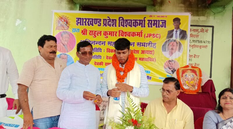 जेपीएससी की परीक्षा में छठा रैंक लाने वाले राहुल विश्वकर्मा सम्मानित