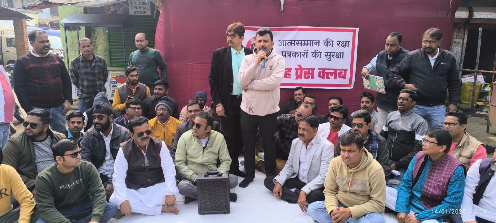 धरना में पत्रकारों को संबोधित करते हुए अध्यक्ष राकेश सिन्हा ने कहा कि नगर निगम के अजीडीह टॉल वसूली केंद्र में झारखंड उच्च न्यायालय के रोक के आदेश के बावजूद संवेदक द्वारा टॉल की वसूली की जांच होनी चाहिए और विधि सम्मत संवेदक पर कार्रवाई होनी चाहिए। इस वसूली की खबर बनाने के दौरान पत्रकार अमरनाथ सिन्हा पर हुए हमले के दोषियों में चार की गिरफ्तारी हुई है, लेकिन संवेदक पर अभी तक कार्रवाई नहीं हुई है।