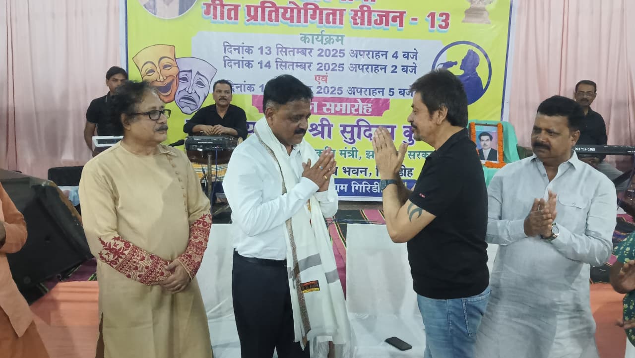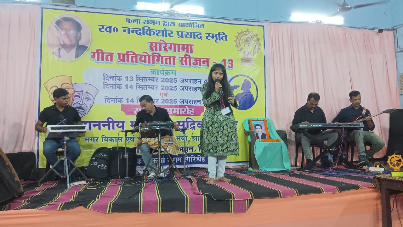 गिरिडीह : कला संगम के तत्वावधान में अधिवक्ता संघ भवन में आयोजित स्व. नन्दकिशोर प्रसाद स्मृति सारेगामा गीत प्रतियोगिता सीजन 13 का फाइनल रविवार को हुआ। फाइनल के दौरान मुख्य अतिथि नगर विकास, खेल-कूद, पर्यटन, कला एवं संस्कृति मंत्री सुदिव्य कुमार सोनू का अभिनंदन और सम्मान किया गया। सम्मान के पूर्व सचिव सतीश कुंदन ने बताया कि आजादी के बाद झारखंड में संगीत नाटक अकादमी, ललित कला अकादमी एवं साहित्य अकादमी का गठन हमारे गिरिडीह के विधायक एवं झारखंड के कला संस्कृति मंत्री सुदिव्य कुमार सोनू के हाथों संभव हुआ है। हम उनका तहेदिल से आभार व्यक्त करते हैं, कला संगम की ओर से अभिनंदन एवं सम्मान करते हैं।