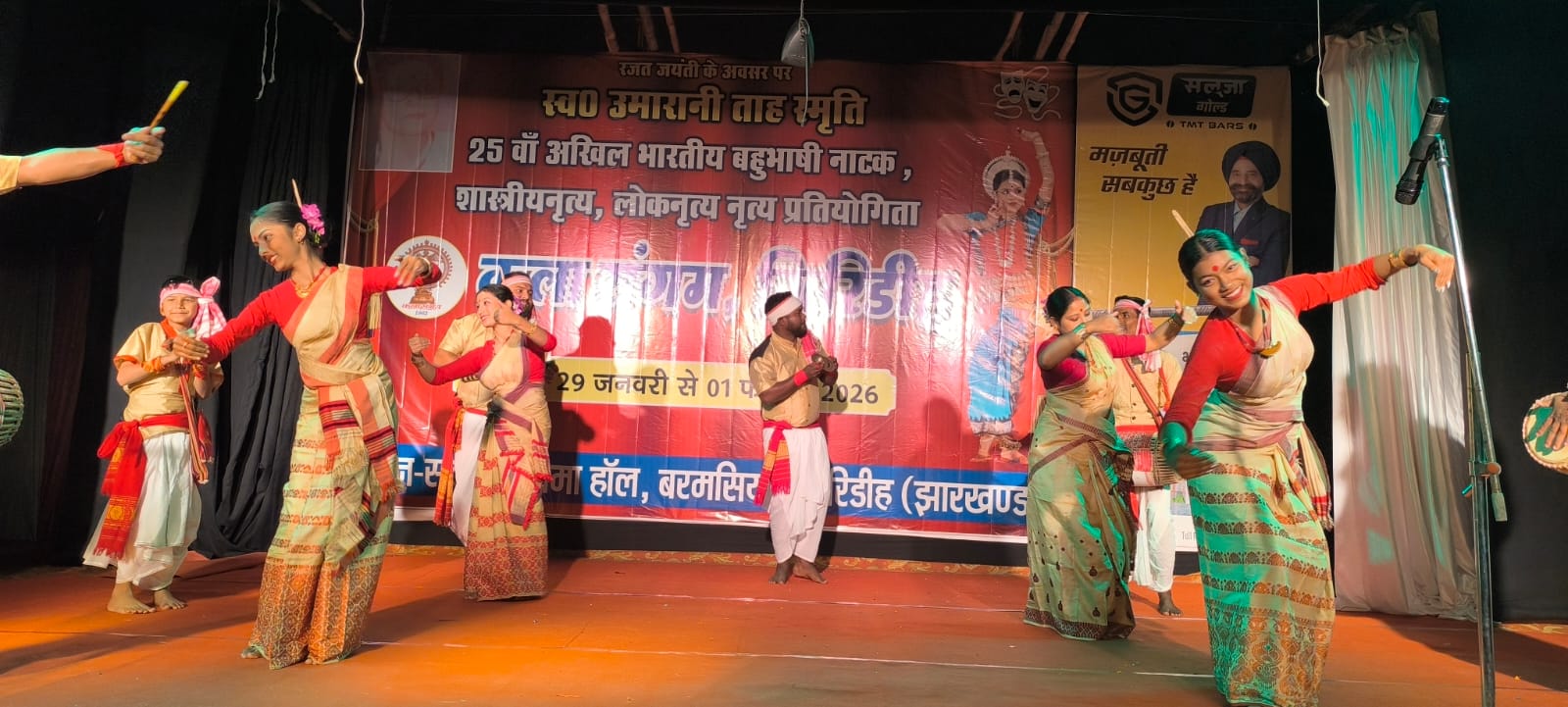 गिरिडीह : कला संगम के तत्वावधान में सबेरा सिनेमा हॉल में आयोजित चार दिवसीय 25वीं अखिल भारतीय बहुभाषी नाटक, शास्त्रीय नृत्य, लोकनृत्य प्रतियोगिता का गुरुवार को असम के बिहू और त्रिपुरा के शास्त्रीय नृत्य से आगाज हो गया। इसके पहले रजत जयंती के रूप में मनाए जा रहे इस महोत्सव का उद्घाटन स्व. उमा रानी ताह की तस्वीर पर माल्यार्पण एवं दीप प्रज्ज्वलित कर किया गया।