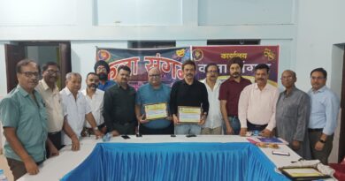 विद्यालय सचिव तुलो राणा को सम्मानित करते झामुमो जिलाध्यक्ष संजय सिंह।