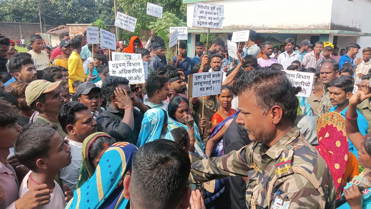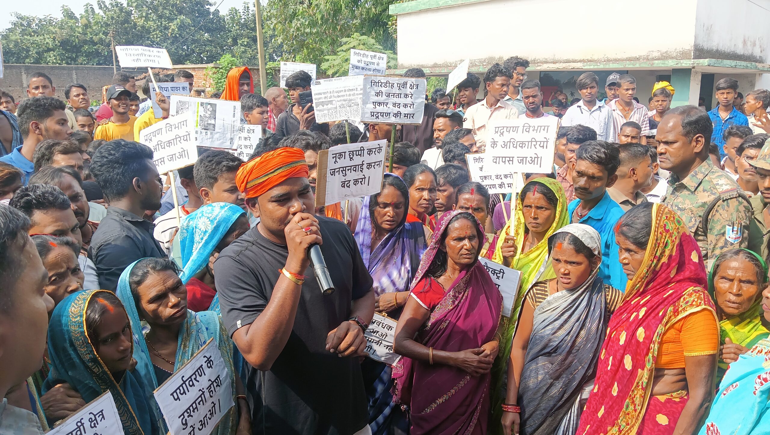 — हाथों में विरोध के नारे लिखे तख्तियां लेकर आए थे ग्रामीण